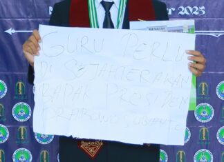“Kita mengamankan dan menyita satu buah cobek kayu sepanjang satu meter, sebilah pedang dengan panjang 50 centimeter, sebilah lehdek, satu bilah parang sepanjang 35 centimeter, dua batang paku sepanjang 8 cm yang dibalut tali rapia biru, serta satu bendera berwarna hitam bertuliskan official masterim,” ujarnya.